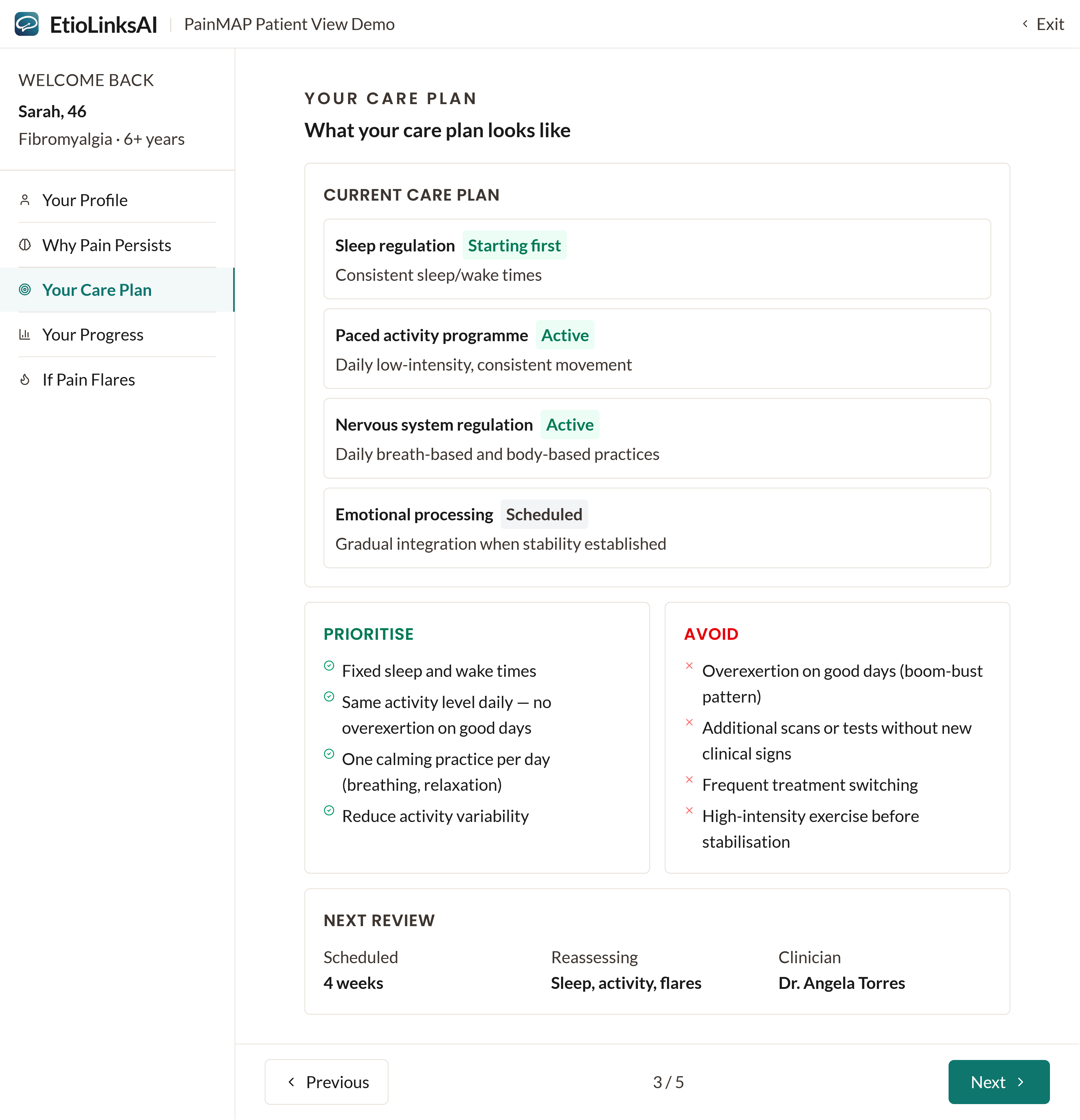 Every recommendation is reviewed and controlled by your clinician. PainMAP provides guidance, and your doctor makes the final call.